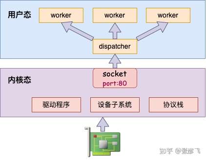 于是出现了这种 ,不在局限于一个 socket ,而是持有多个socket , 然后再分配的时候操作系统做负载均衡, 就可以最高效率地处理请求了.nginx 也是这样解决的
