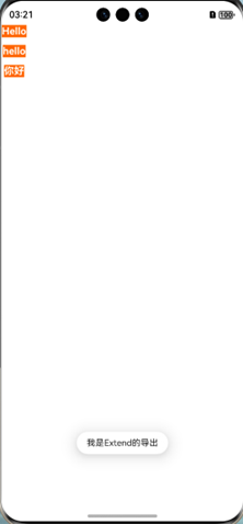 @Extend(Text) function extendTxt() { .backgroundColor("#ff6600") .fontColor("#ffffff") .fontWeight(FontWeight.Bold) .height(20) .onClick(() => { promptAction.showToast({message: "我是Extend的导出" }) }) }