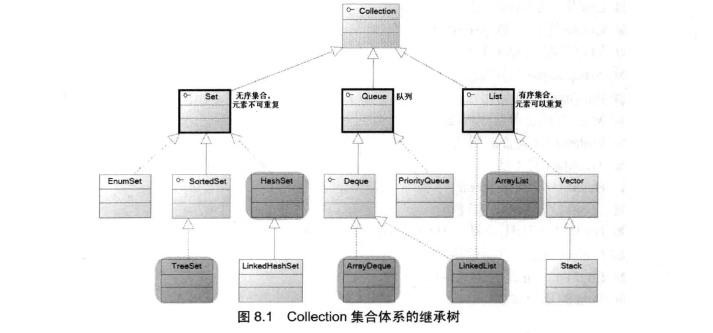 Collection接口、子接口及其实现类的继承树: