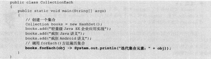 Java8为Iterable接口新增一个forEach(Consumer action)默认方法,该方法时一个函数式接口。