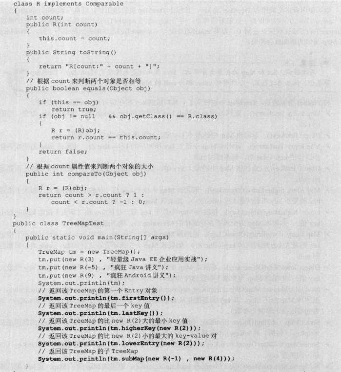 (2)定制排序:创建TreeMap时,传入一个Comparator对象,该对象负责对TreeMap中的所有key排序。采用定制排序时不要求Map的key实现Comparable接口。