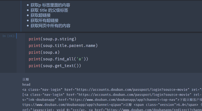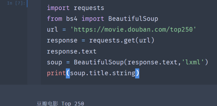 接着将 html 的源代码传给 BeautifulSoup,此时此刻就不需要自己写正则匹配了,我们要做的就是从这个对象直接获取我们要的内容获取标题的内容
