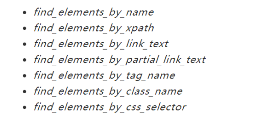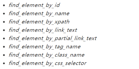 就像刚刚我们要获取输入框然后输入一些内容还有获取按钮点击什么的,selenium 提供了挺多方法给我们获取的,当我们要在页面中获取一个元素的时候可以使用这些方法。