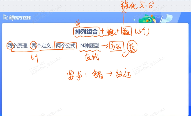 排列组合 ==》重点难点 但是知识点少 共有6个知识点