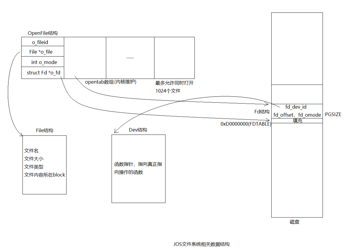 UNIX文件描述符是一个通用的概念,它还包括管道、控制台I/O等。在JOS中,每种设备类型都有一个对应的struct Dev,其中包含了指向实现 读/写 等 功能的函数的指针。对于该设备类型。lib/fd.c在此基础上实现了通用的类unix文件描述符接口。每个struct Fd都表示其设备类型,lib/fd.c中的大多数函数只是将操作分发给适当的struct Dev中的函数。