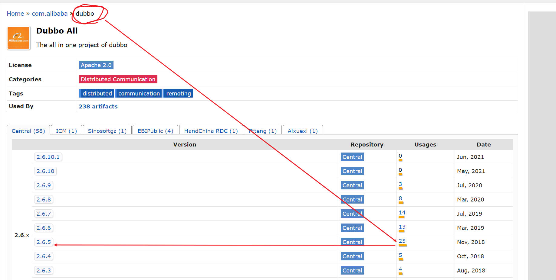 进入https://mvnrepository.com,查找需要引入的jar包及名称
