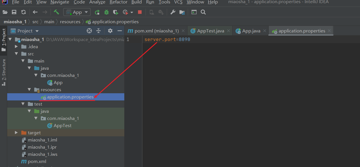 3. 对于项目中resources下,新建appication.properties文件修改Spring Boot默认配置的说明: