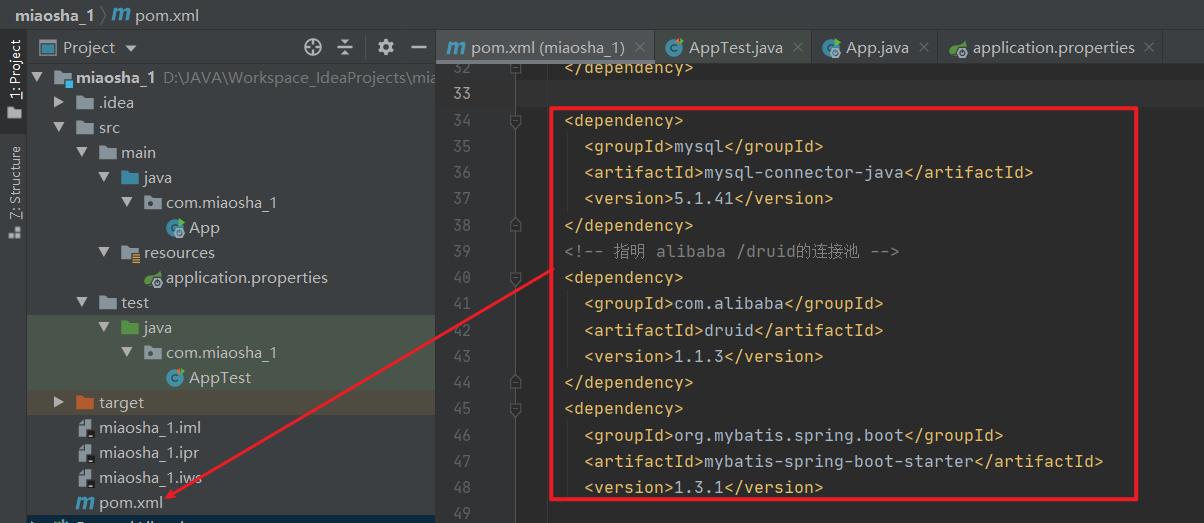 集成 mysql 组件。 修改 pom.xml ,添加支持 mysql 操作的依赖。