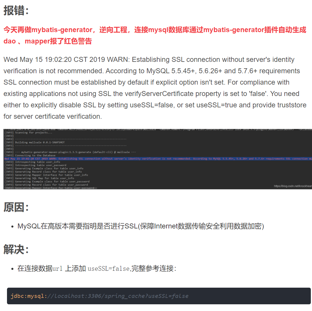 做mybatis-generator,逆向工程,连接mysql数据库通过mybatis-generator插件自动生成dao 、mapper报了红色警告