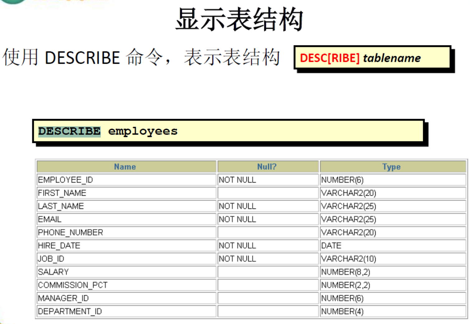 SELECT * FROM employees; - 方式一:
