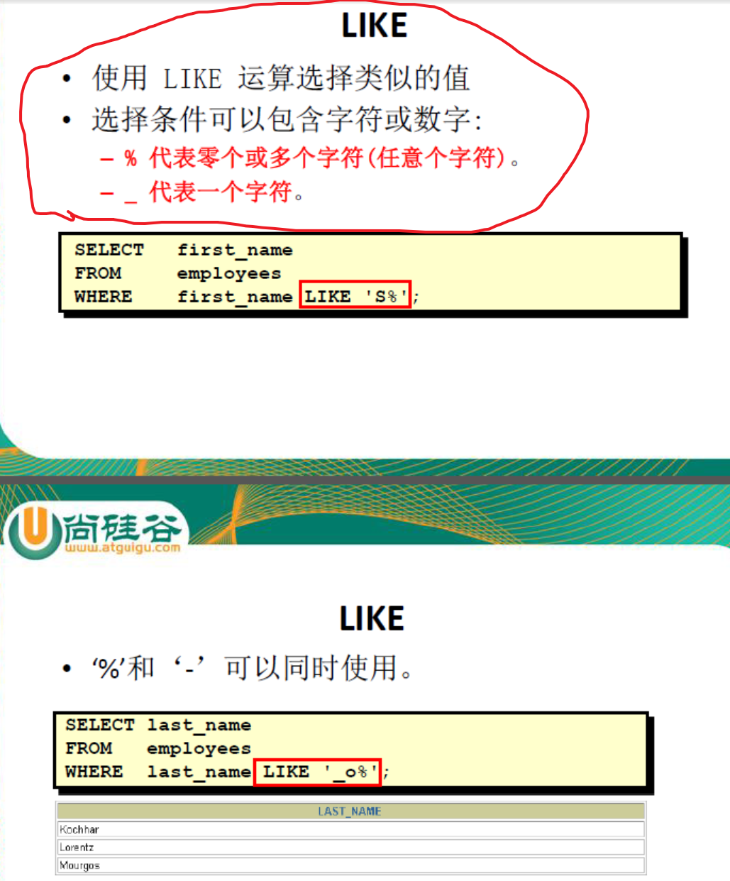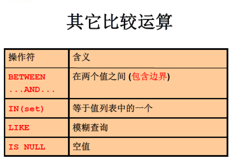 !或not: 如果连接的条件本身为false,结果为true,反之为false三、模糊查询
