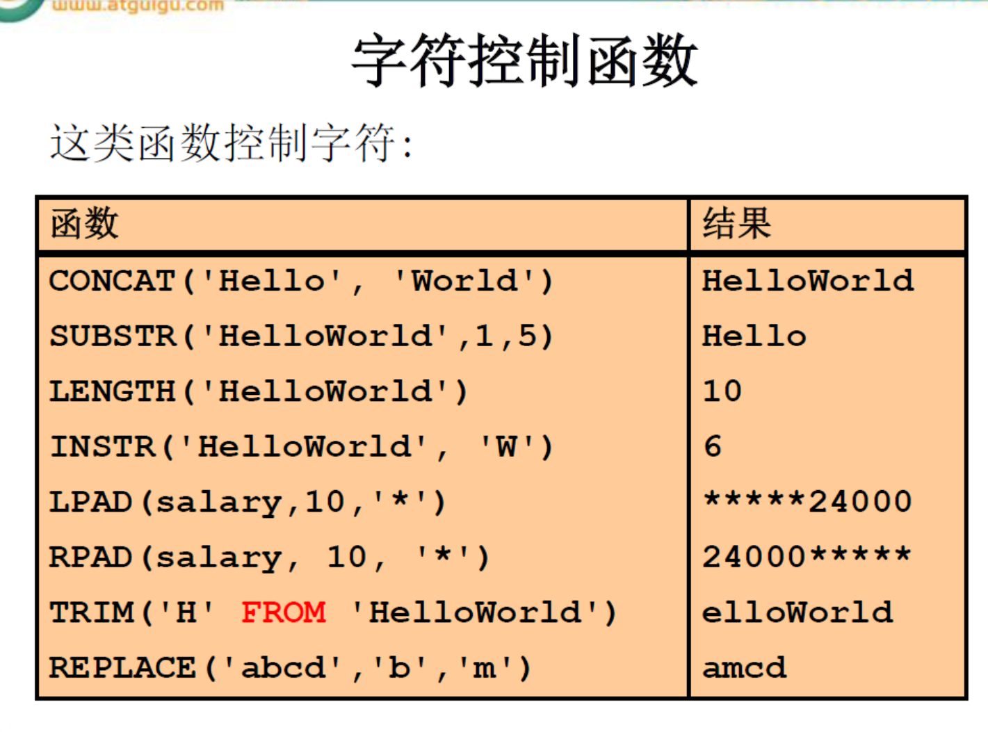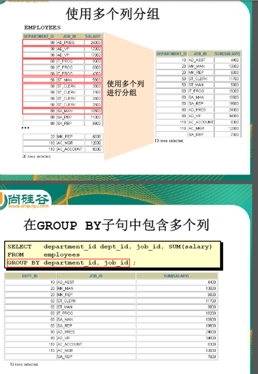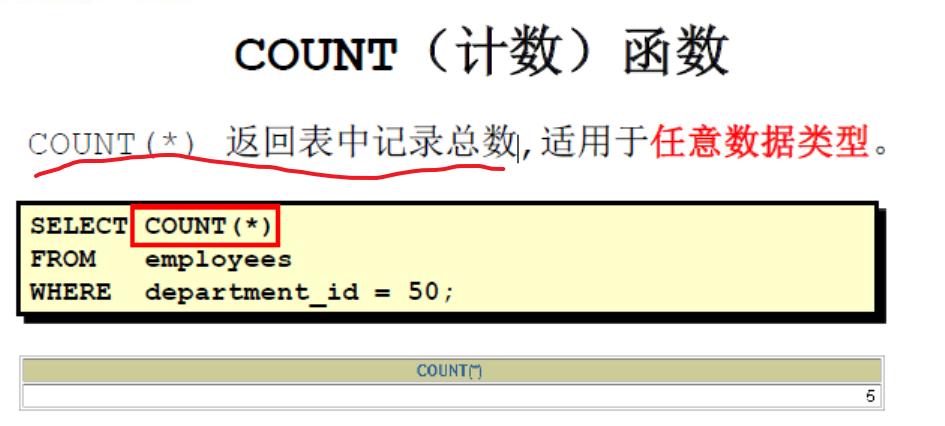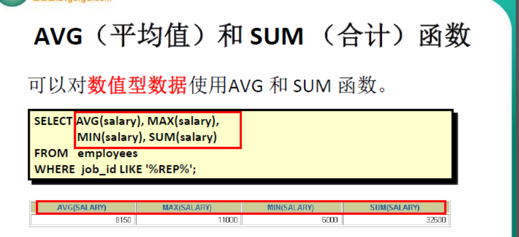 - 组函数类型:AVG() ; COUNT() ; MAX(); MIN() ; SUM() ;