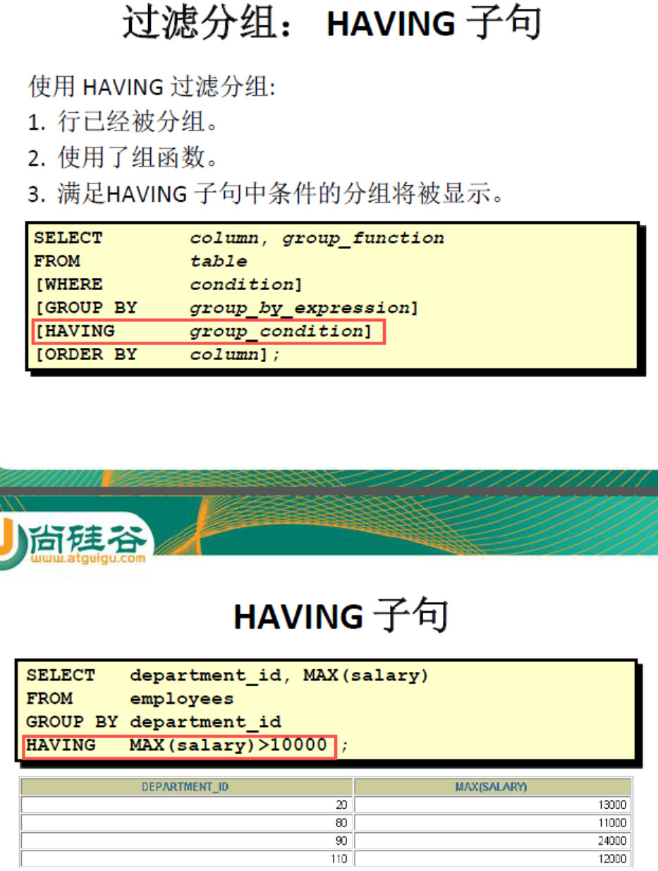 - 可以在HAVING 子句中使用组函数。
