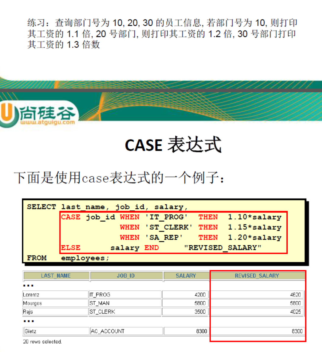 - 案例1:查询工资z在10000到20000之间的员工名、工资以及奖金