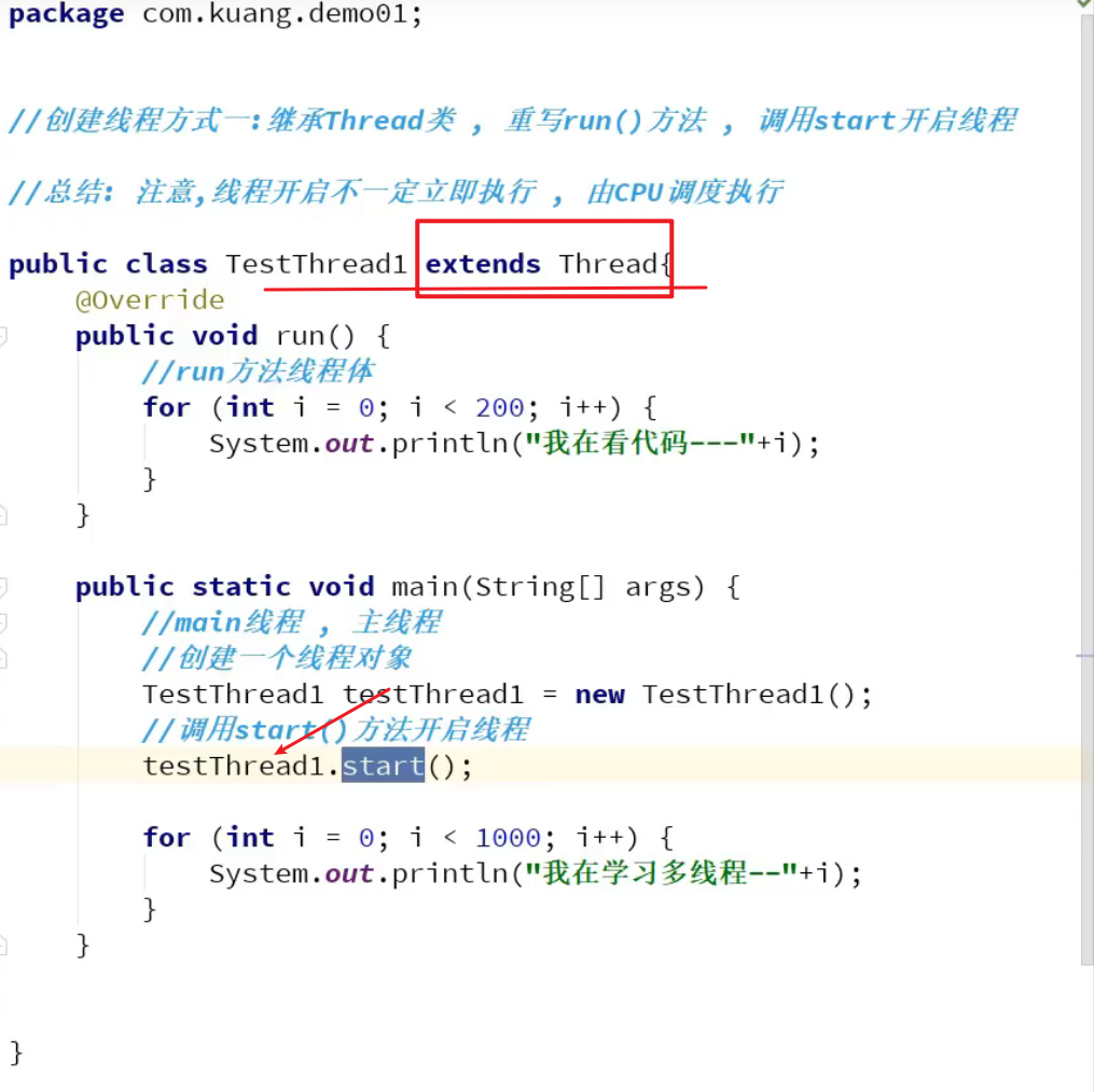 创建方式一:继承Thread类,重写run()方法,调用start()开启线程