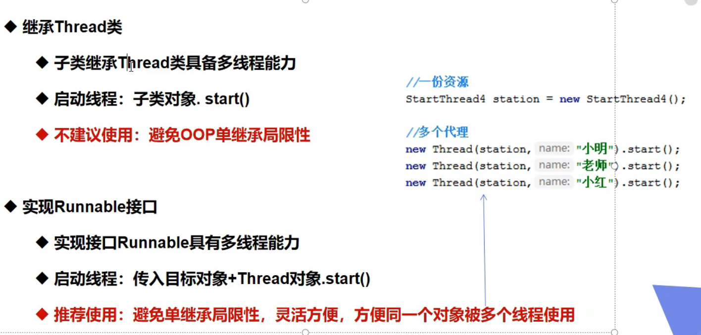 - ==这两种本质上都是通过Thread类调用start()方法,来实现线程开启run()方法。