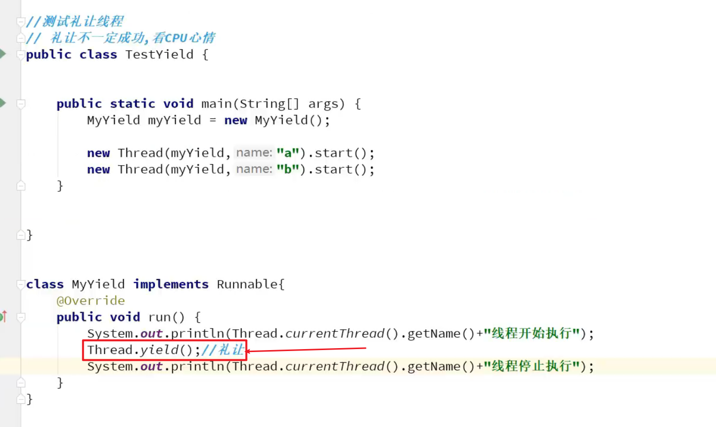 线程礼让——yiled()方法不一定礼让成功