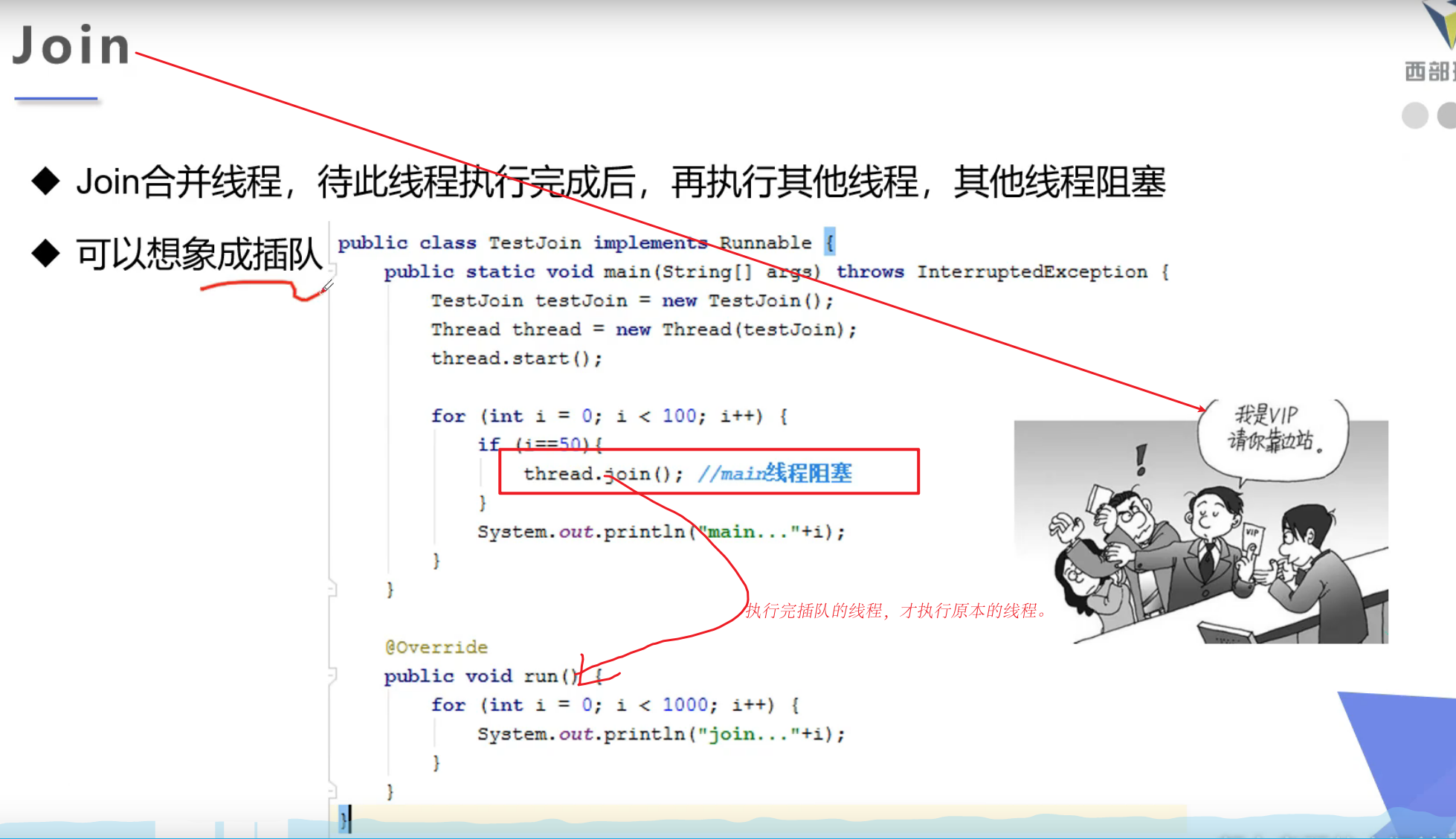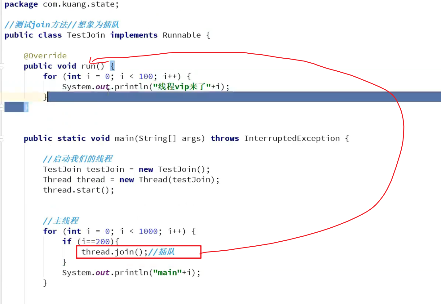 - 插队的线程会强制执行