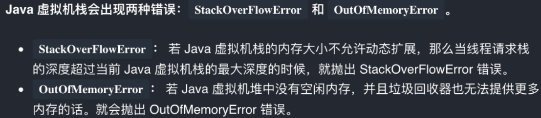 注意:程序计数器是唯⼀⼀个不会出现 OutOfMemoryError 的内存区域,它的⽣命周期随着线程的创建⽽创建,随着线程的结束⽽死亡。