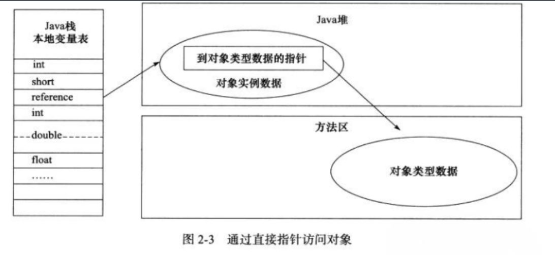 直接指针:如果使⽤直接指针访问,那么 Java 堆对象的布局中就必须考虑如何放置访问类型数据的相关信息,⽽reference 中存储的直接就是对象的地址。
