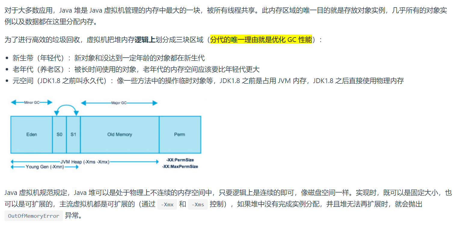 主要是为了提升 GC 效率。上⾯提到的分代收集算法已经很好的解释了这个问题。