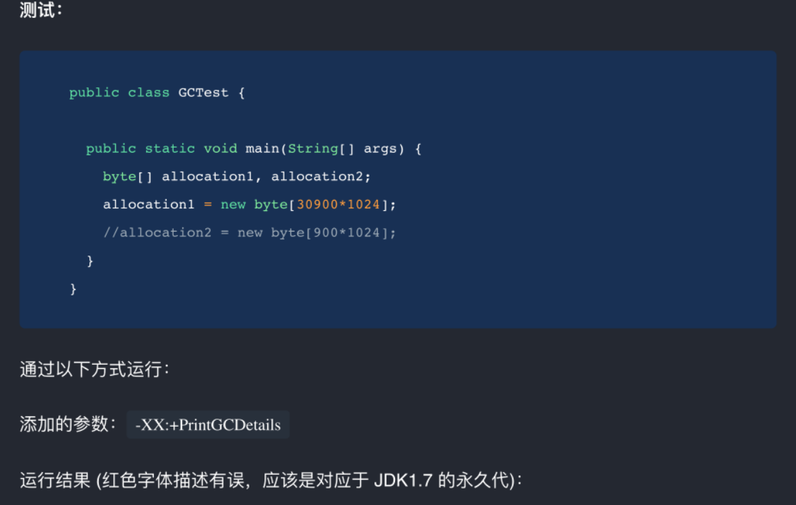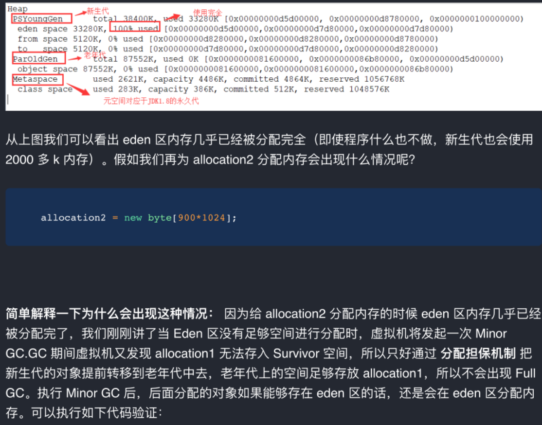 ⼤多数情况下,对象在新⽣代中 eden 区分配。当 eden 区没有⾜够空间进⾏分配时,虚拟机将发起⼀次 Minor GC.下⾯我们来进⾏实际测试以下。