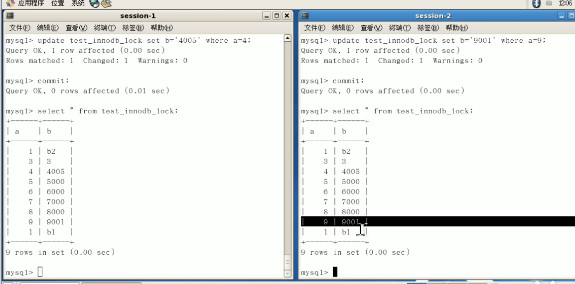 行锁两个SESSION同时对不同记录进行写操作