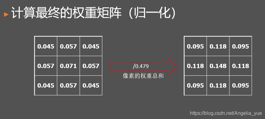 通俗的讲,高斯滤波就是对整幅图像进行加权的过程,每一个像素点的值,都由其本身和邻域内的其他像素值经过加权平均后得到。其滤波核的值由如下公式得到(用当前点与中心点的欧式距离的平方代替下面的(x2+y2):
