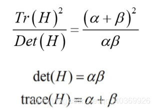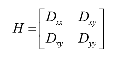 由于DOG函数在图像边缘有较强的边缘响应,因此需要排除边缘响应DOG函数的峰值点在边缘方向有较大的主曲率,而在垂直边缘的方向有较小的主曲率。主曲率可以通过计算在该点位置尺度的2×2的Hessian矩阵得到,导数由采样点相邻差来估计: