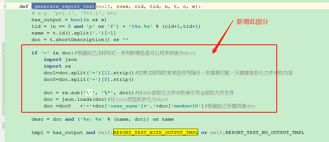HTMLTestRunner生成的报告显示注释(注释中含有参数文件中数据)以及个性化设置报告显示的参数数据的内容