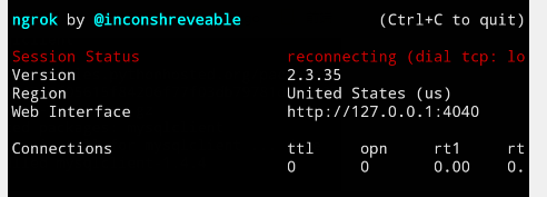 二。想使用ngrok内网穿透,但是中国的ngrok 无法访问,进入www.ngrok.com去下载客户端(linux(apm))后,在termux启动,发现无法连接上网络,fq也仍然是无法连接,所以此种方法暂时放弃了(留待有缘人了):