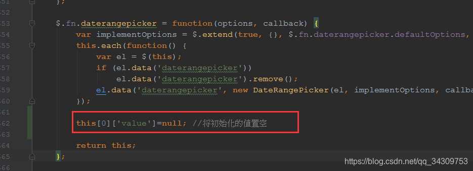 在 daterangepicker.js 中修改,在return this 之前,修改value的值: