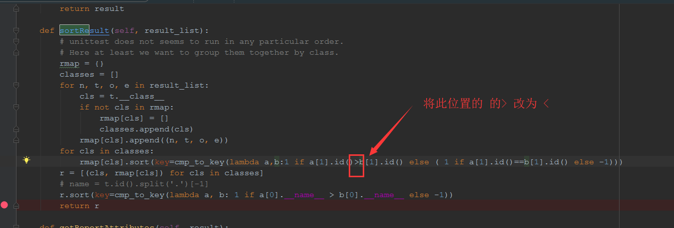 4.查看HTMLTestRunner 的源码,其中 sortResult 是提供排序功能的