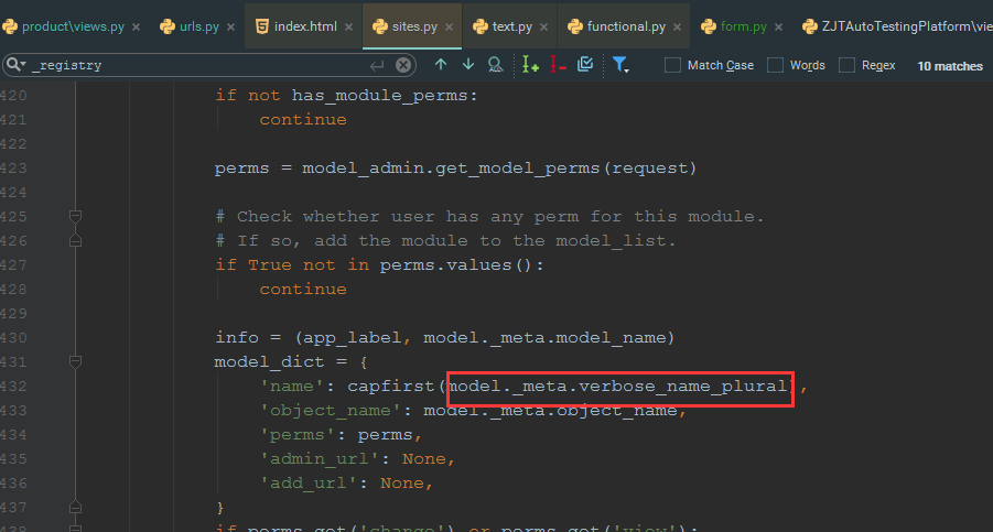 自己因为需要获取Modal类的verbose_name 和verbose_name,但是这两个字段在其 Modal 内部类 Meta中