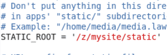 在上述中修改了STATICFILES_DIRS的值启动时会报错(提示包含了STATIC_ROOT),所以我们将STATICFILES_DIRS 中的os.path.join(BASE_DIR, 'static/'),删除,则也可以执行:python manage.py collectstatic