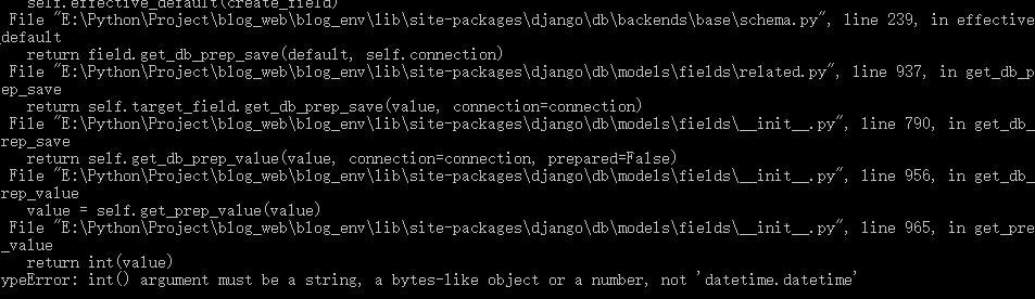1.出现错误:TypeError: int() argument must be a string, a bytes-like object or a number, not 'datetime.datetime'