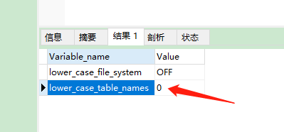 0为区分大小写,1为不区分大小写,会自动将查询表名转为小写