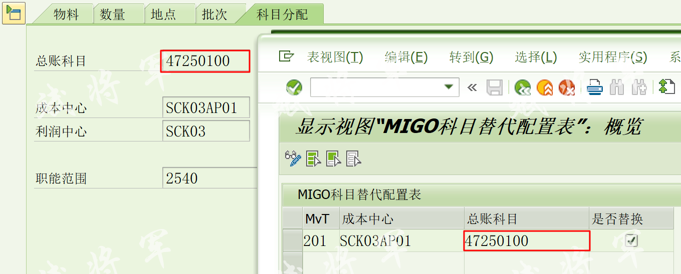 MIGO过账时,判断移动类型和成本中心在自建表ZFIT_KMTD中是否配置了对应的总账科目,如果有,就将MIGO中的总账科目替换为自建表中的总账科目。最终也影响会计凭证和物料分类账中的总账科目。