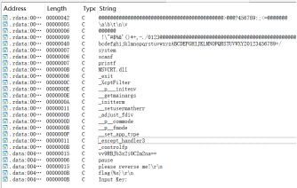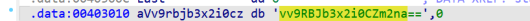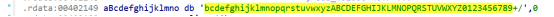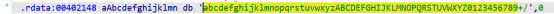 按SHIFT+F12打开该文件的字符串窗口,发现有一个Base64变形索引表。