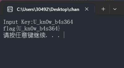 最后运行change.exe程序,输入该字符串,得到最终flag——“flag{U_kn0w_b4s364}”。
