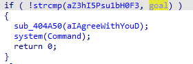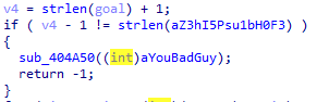 先查看程序正确输出flag的位置(v9被我改成了goal):