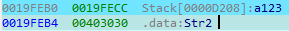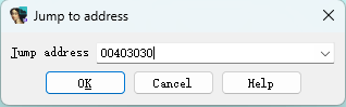 复制str2前面的“绿色”地址,然后点击汇编窗口的任意位置,按“G”键快速跳转到对应地址。