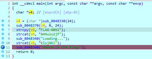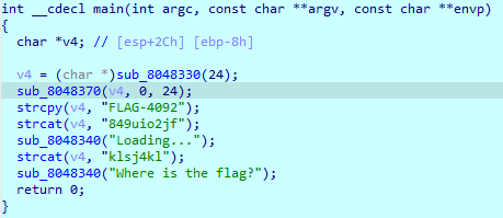 点击main函数,跳转到对应的汇编代码块并进行反汇编,就得到如下结果: