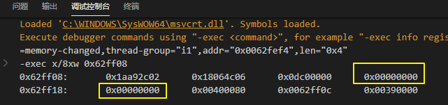 =memory-changed,thread-group="i1",addr="0x0062fef4",len="0x4"