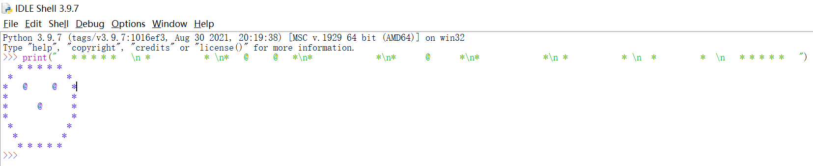 print(" * * * * * \n * * \n* @ @ *\n* *\n* @ *\n* *\n * * \n * * \n * * * * * ")