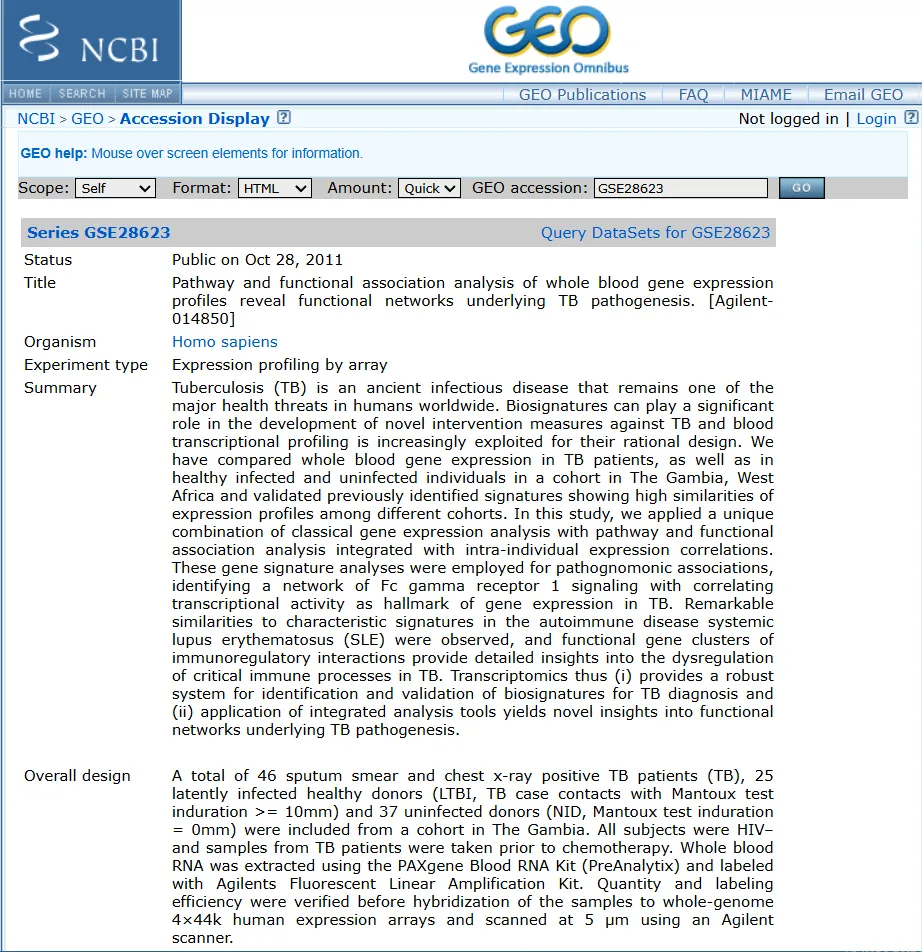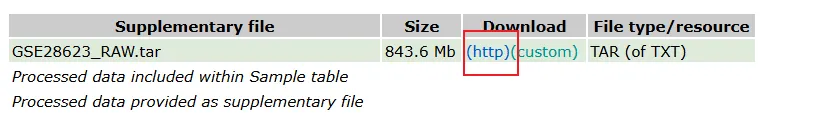 可以看到GSE28623是 芯片数据,因此可以使用GEOquery包下临床信息,然后从网页下载 原始的基因表达数据用 R 标准化处理