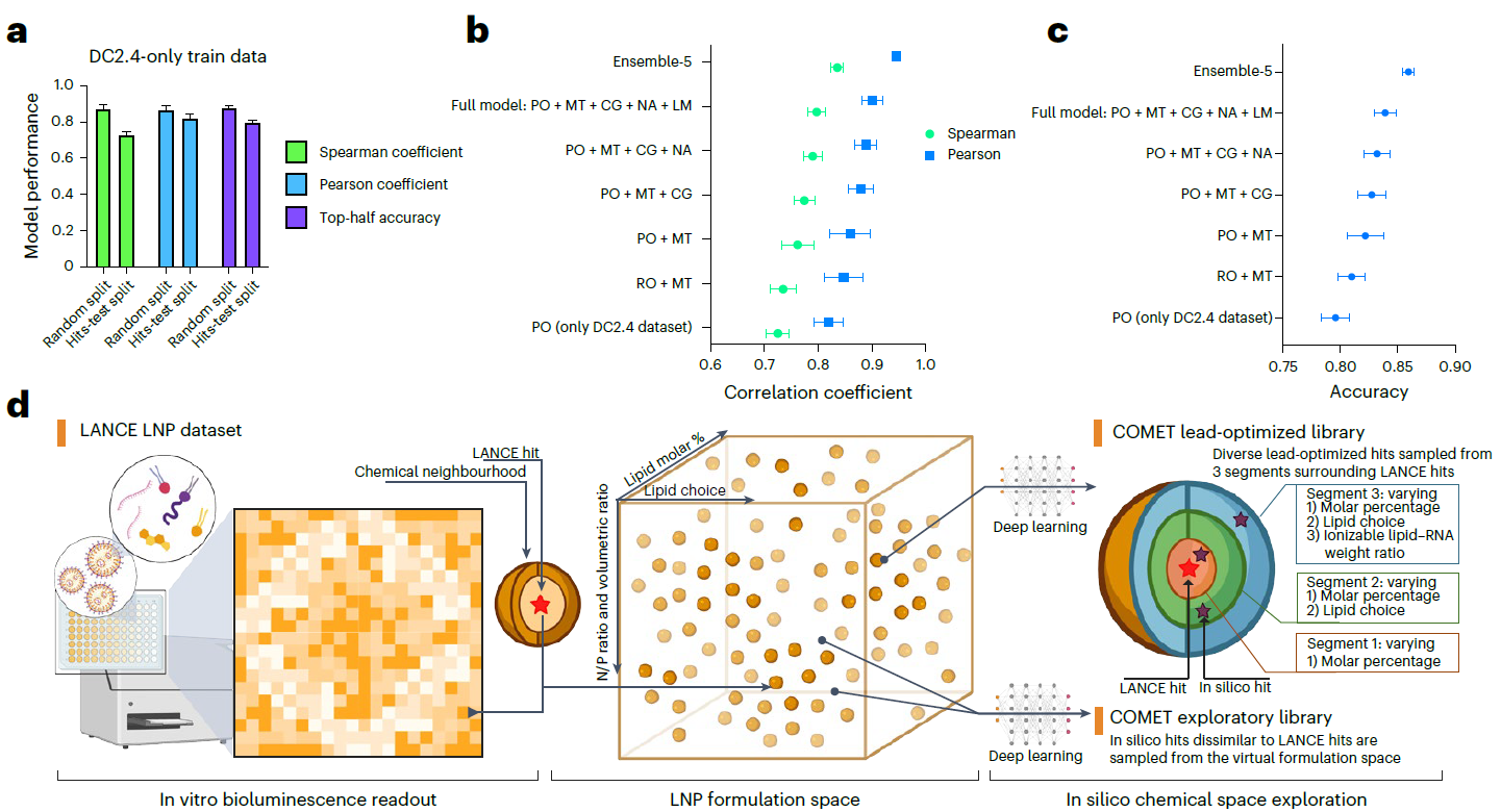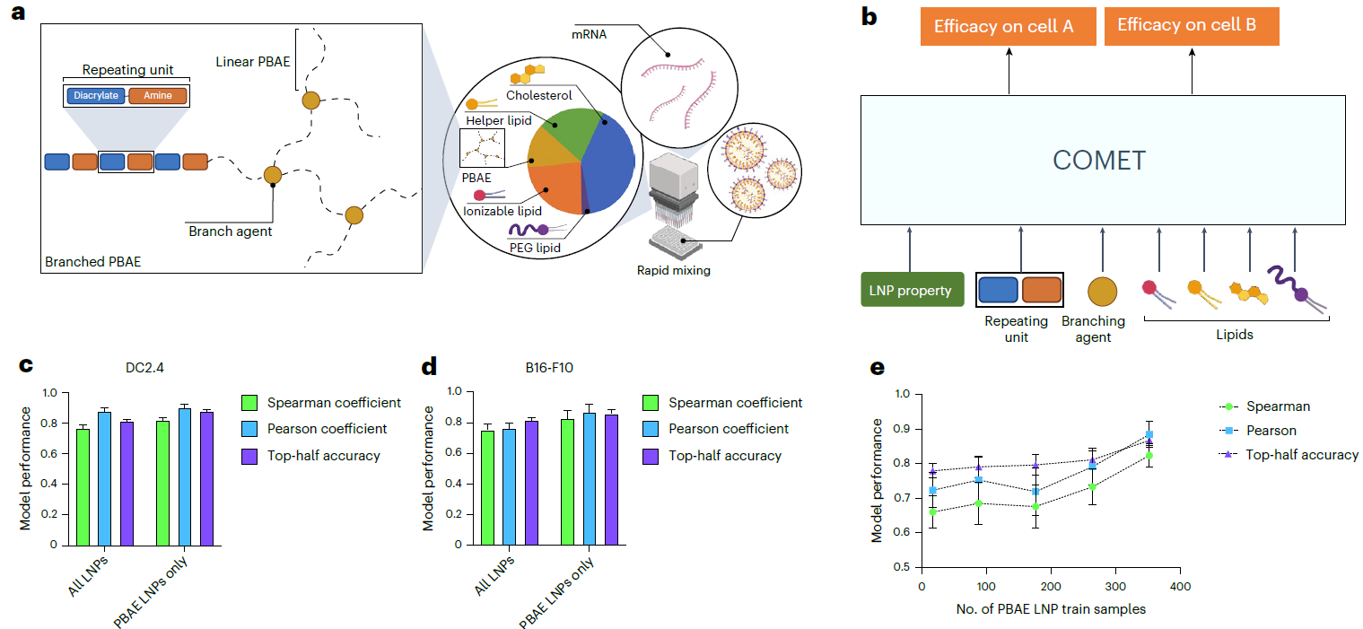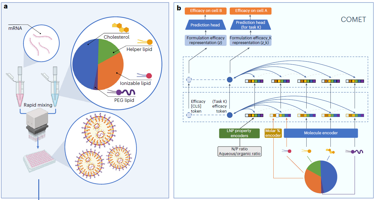 ● 开发COMET模型:基于Transformer神经网络的深度学习模型,能够准确预测LNP的效能