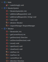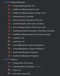 在迭代中也未解决这个问题,但在题目集6单部电梯调度算法中成功解决了电梯类职责过多的问题,其结构如下: