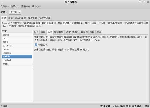 说明:firewalld 的缺省区域是 public。