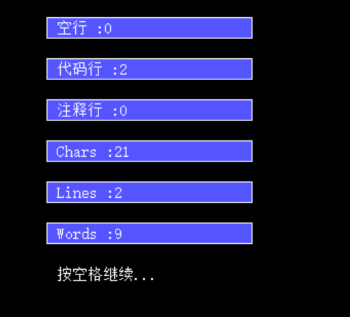 1 Fio_Lines_Sum = 0; // 总行数 2 Fio_Chars_Sum = 0; // 总字符数 3 Fio_Words_Sum = 0; // 总单词数 4 5 char buffer[256]; 6 int bufferLen = 0; 7 int isLastBlank = 0; 8 int WordNum = 0; 9 int CharNum = 0; 10 11 while (!Fio_Fin.eof()){ 12 13 Fio_Fin.getline(buffer, 256,'\n'); 14 bufferLen = strlen(buffer); 15 16 //printf("%d\n", bufferLen); 17 // 遍历缓冲区的内容 18 for (int i = 0; i < bufferLen; i++){ 19 20 char ch = buffer[i]; 21 if (ch == ' ' || ch == '\t'){ 22 23 if (!isLastBlank){ 24 WordNum++; 25 } 26 isLastBlank = 1; 27 } 28 else if (ch != '\n' && ch != '\r'){ 29 CharNum++; 30 isLastBlank = 0; 31 } 32 } 33 34 if (!isLastBlank){ 35 WordNum++; 36 } 37 38 isLastBlank = 1; 39 40 41 Fio_Lines_Sum++; // 总行数 42 Fio_Chars_Sum += CharNum; // 总字符数 43 Fio_Words_Sum += WordNum; // 总单词数 44 45 CharNum = 0; 46 WordNum = 0; 47 }